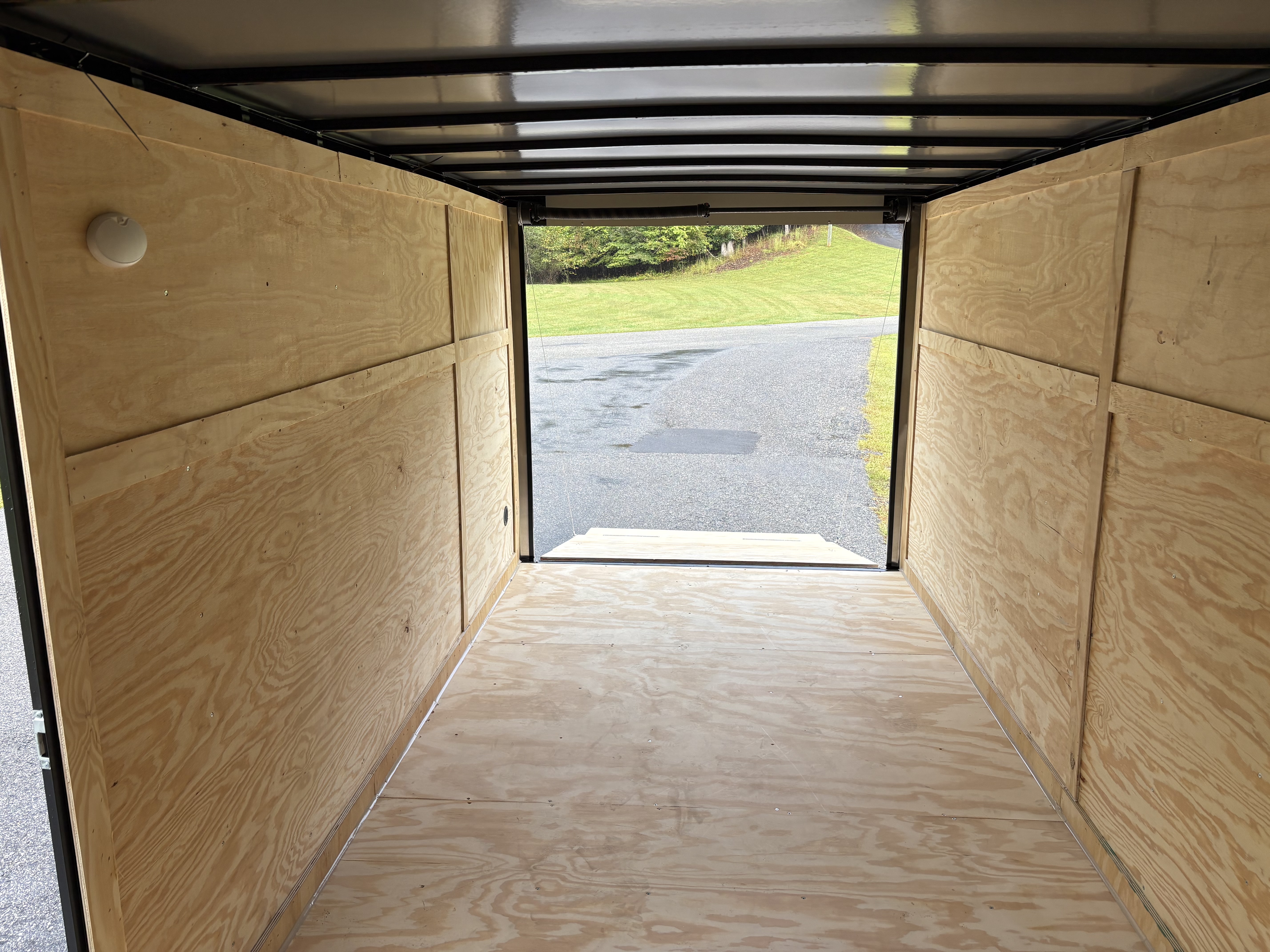 Inside, the trailer features 3/8” plywood sidewalls, 3/4” plywood floors (painted underneath for added protection), and a rugged steel tube frame built on 16” on-center wall and floor crossmembers. With a 75” (6’3”) interior height, it offers plenty of clearance for equipment, cargo, or recreational vehicles.