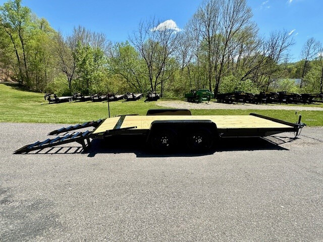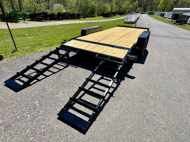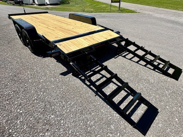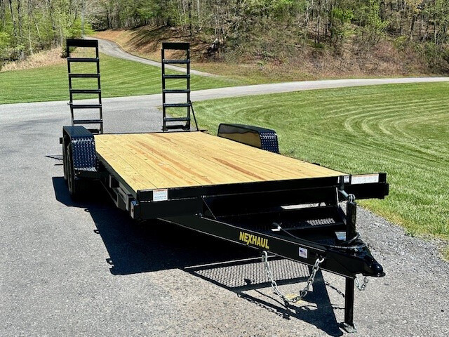 The 7x16 10K Equipment Trailer from Nexhaul's 10K lineup is built for strength and reliability, with a 10,000 GVW rating to handle heavy-duty loads. Featuring a robust 5” channel frame and wrap-around tongue, it ensures durability and secure hauling. The 3” channel cross members, spaced 16” on-center, provide extra strength, while the 2’ treated wood dove tail and 2” treated wood floor offer a stable, sturdy platform for transporting equipment. Equipped with (2) 5,200 lb. EZ Lube axles, slipper spring suspension, and electric brakes with a breakaway system, it offers smooth towing and safety. The trailer also includes heavy-duty safety chains, 20” x 60” flip-up ramps, stake pocket tie-downs, and diamond plate fenders for added functionality. With 15” radial tires, 82” between fenders, and a 5000 lb. tongue jack, this trailer is ready to tackle tough jobs. The primed and painted frame, LED lighting, and 7-way RV plug complete the package, making this 7x16 10K Equipment Trailer a durable and reliable choice for all your hauling needs.