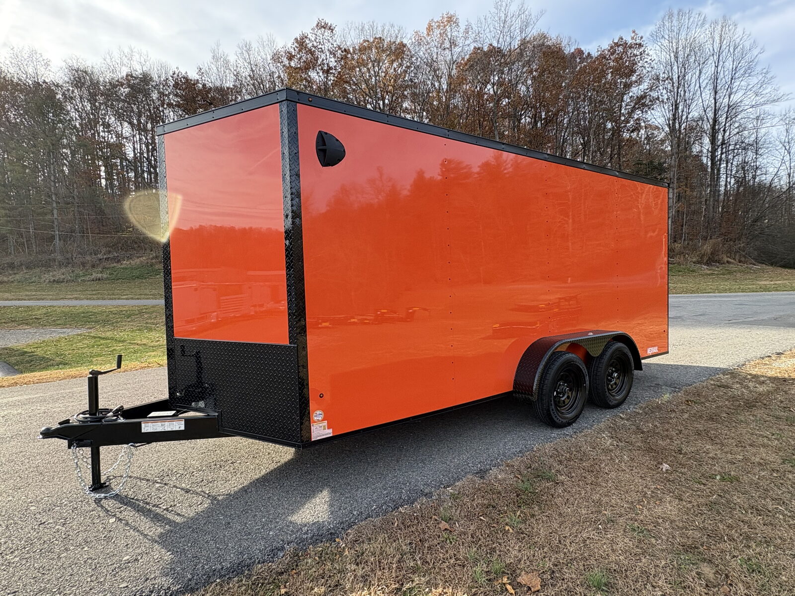 The Nexhaul Bullet Series 7x16 orange blackout enclosed trailer delivers premium construction, bold styling, and dependable towing performance. With its .080 engineered PC exterior, reinforced framing, tandem brake axles, and 15 year engineered floor warranty, this trailer provides professional grade hauling capability with the durability Nexhaul is known for.