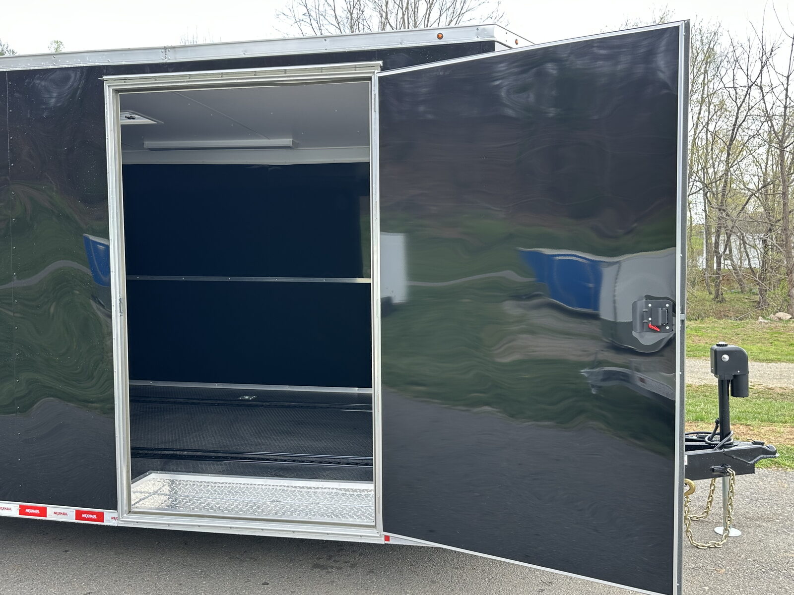 This Nexhaul 8.5x30 trailer is built for the bold, the fast, and the fearless—crafted to thrive under pressure and dominate at the track. With 3/4" engineered flooring backed by a 15-year warranty, spread axle design, and twin 6000LB torsion axles, it’s ready to haul serious weight with serious attitude. The rugged .030 semi-screwless aluminum exterior wraps around a frame featuring 16" on-center floor, walls, and ceiling, while a one-piece aluminum roof, aluminum corners, fenders, and wheels (design based on availability) bring the toughness full circle. Inside, you get a 78" interior height with black aluminum walls, 36" carpeted lower walls, and a clean white vinyl ceiling. The upper V-nose cabinets in black give you pro-level storage, while the coin rubber floor keeps things grippy and durable. Lighting is handled with an electrical package featuring four 48" LED ceiling 110V lights with wall switch, four 110V receptacles, a panel box, 30 Amp RV inlet and cord, plus (2) LED 12V interior lights. With 8 D-rings, a spring-assist ramp door with flap, electric brakes on all four radial tire-equipped wheels, and a 60" extended tongue, this rig pulls like a beast and hauls like a legend. Add in the 2-5/16" ball coupler, vented battery box, two manual roof vents, a 48" side door with flush lock, safety chains, and a V-nose with dove tail for sleek entry, and you’ve got a trailer that’s all business. Available in 8.5x16, 8.5x20, 8.5x24, 8.5x28, and 8.5x30 with heavier load capacity options, this machine is track-ready, race-proven, and built to be the baddest thing behind your rig.