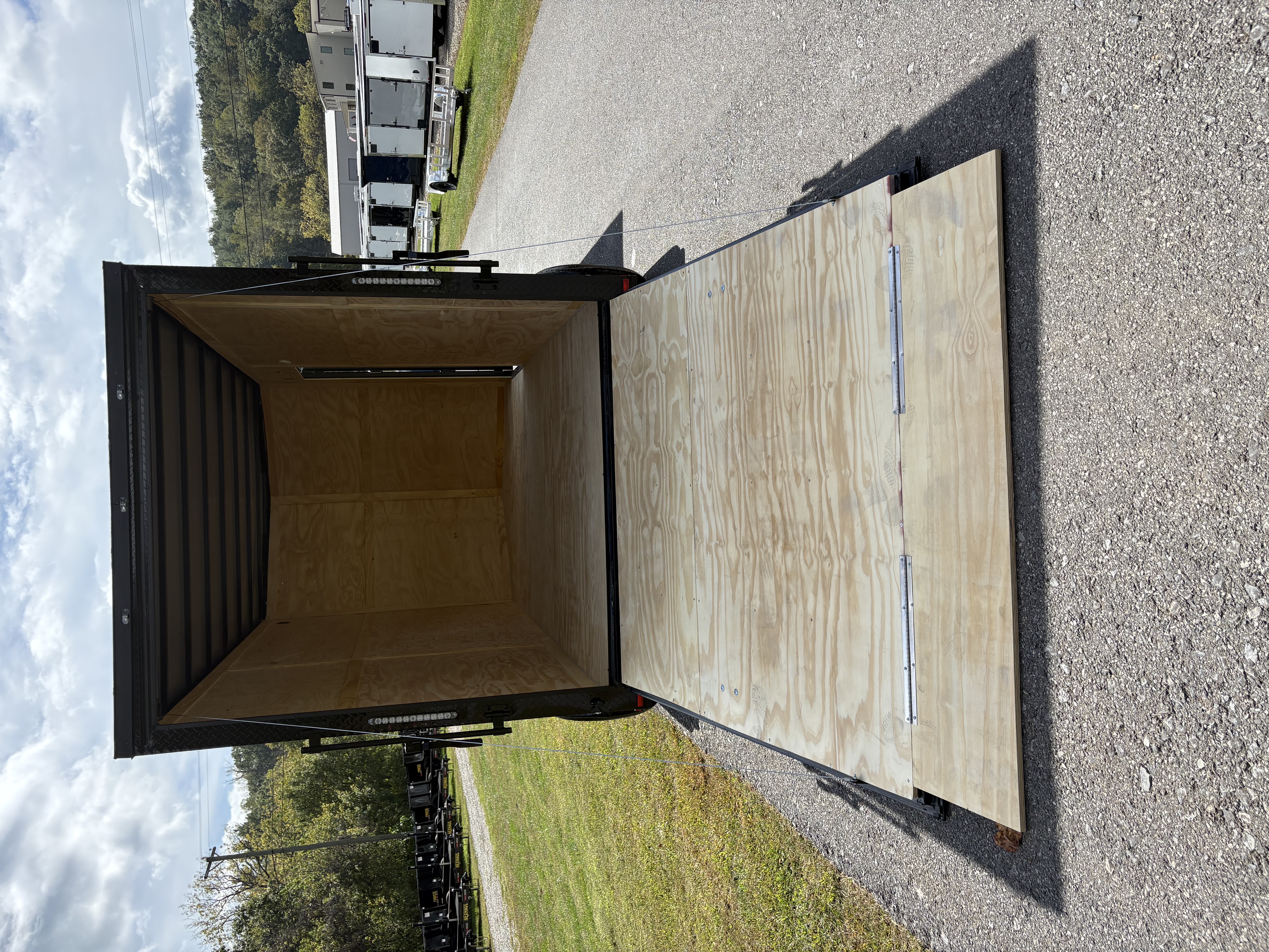 A spring-assist rear ramp door with ramp flap makes loading smooth and simple—ideal for ATVs, mowers, motorcycles, or jobsite gear. The 32” side door with flush lock allows easy access, and the LED exterior lighting package ensures visibility day or night. Premium touches like aluminum fenders, galvalume roof, and V-nose with stoneguard complete the look while adding long-term protection and aerodynamic efficiency.